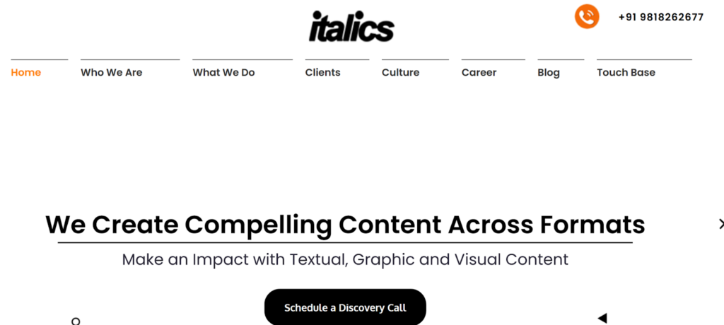 Italics has been in the content space since 2005, making it one of the earlier entrants in India’s content writing industry. Italics sits between boutique copy houses and broader content vendors. They emphasize craft (headlines, voice, conversion-focused copy) and can scale to campaign-sized outputs with the right brief.