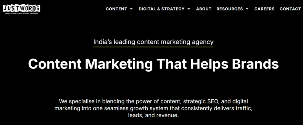 | Justwords | SEO-driven content marketing | Strategy + editorial depth |