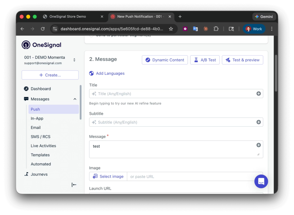 - Trigger your push notification