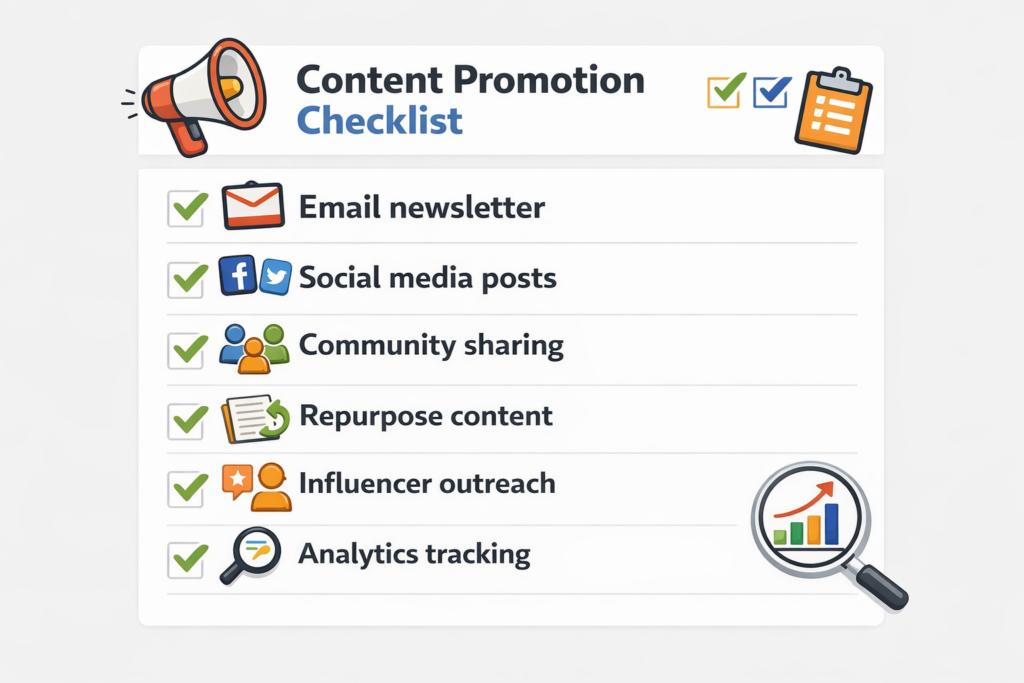 With so many promotion channels available, it helps to have a repeatable system. Here’s a simple checklist you can follow every time you publish a new piece of content: